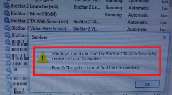 Windows could not start the BioStar 2 TA Web Server(x64)