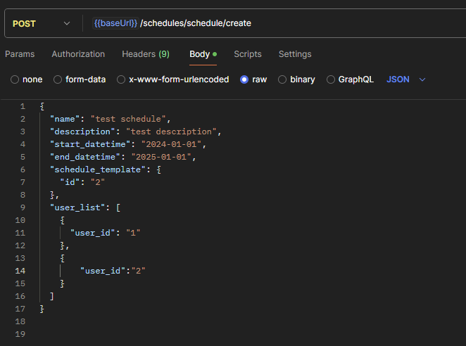 After running the API successfully, you'll receive a 201 (Created) HTTP status code and a response body with the new schedule's ID.