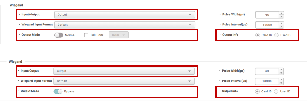 - IMPORTANT: If CSN cards are already enrolled before switching to Wiegand format, authentication may fail. Always set the correct card format before enrolling cards for Wiegand Output use.